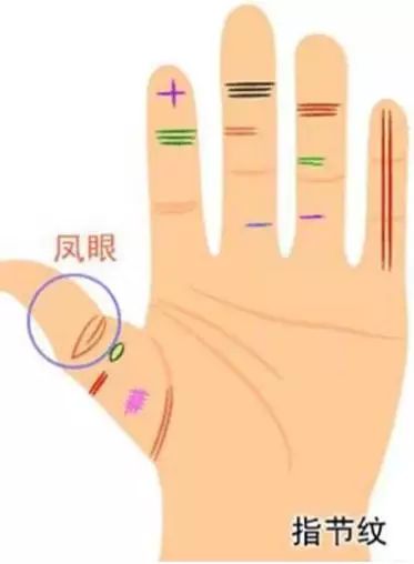 一般人在食指上面有一条横纹叫做指节纹,如果有三条指节纹的话叫做三约纹,这种人一生中不缺钱,往往都是由桃花来的,例如男人可能娶到很有钱的老婆,或者女孩子会拿钱给他,女性会找到有钱的男人。
