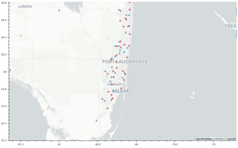 以下是迈阿密地区的Target和沃尔玛分布点: